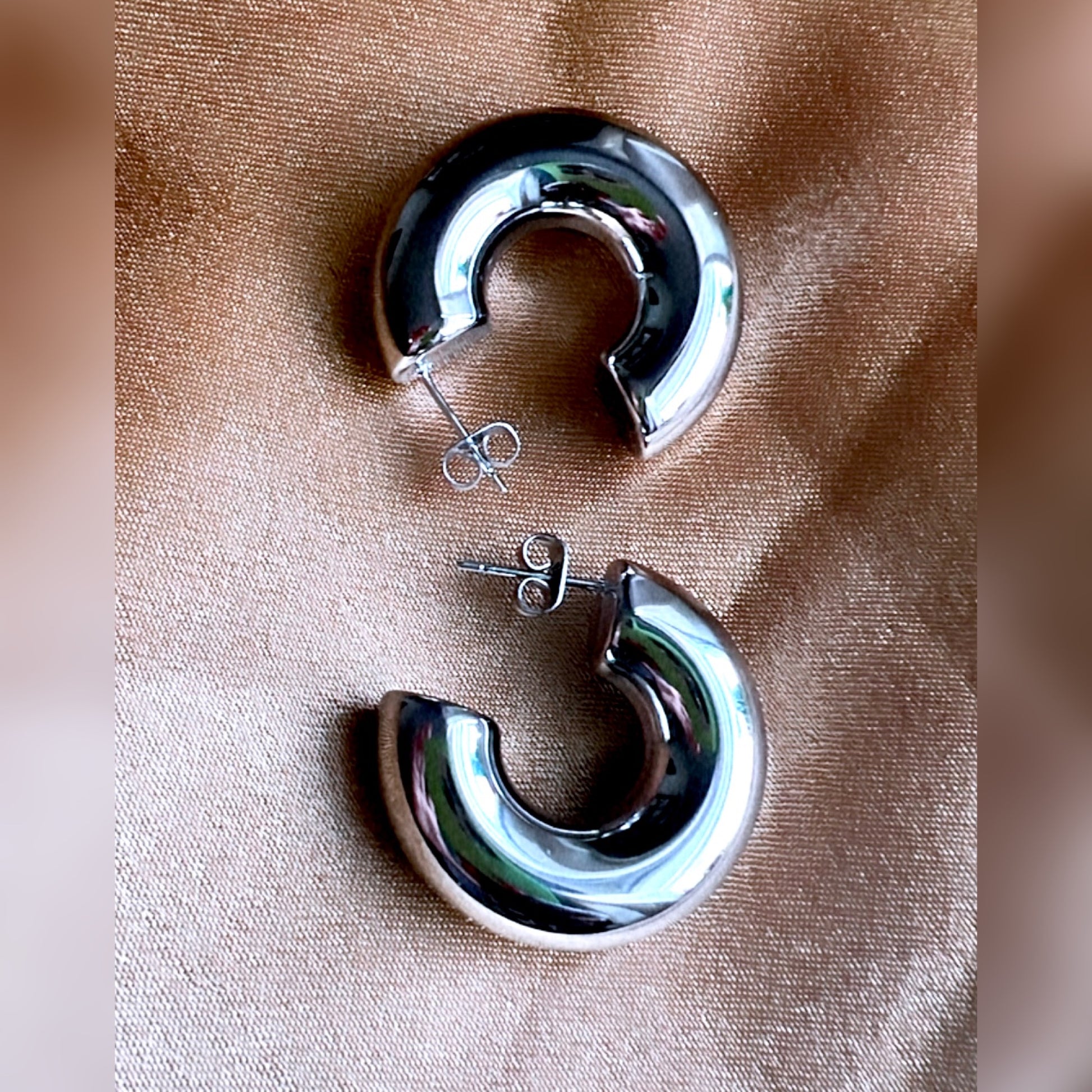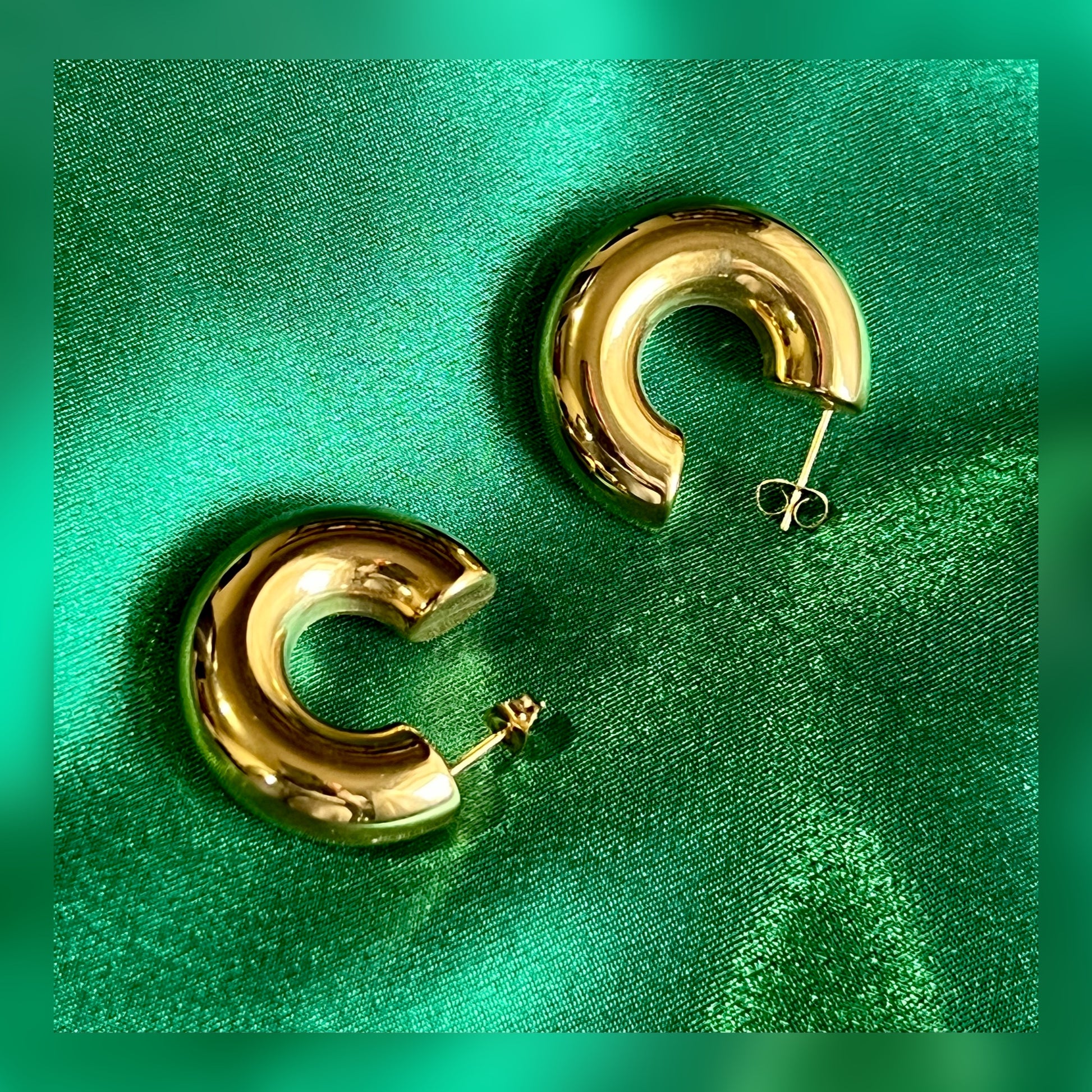 Crafted from high-quality 18k gold over stainless steel, these Cammie Hoops are both stylish and durable. The medium weight design offers a comfortable fit for daily wear, while also being tarnish resistant for long-lasting beauty.