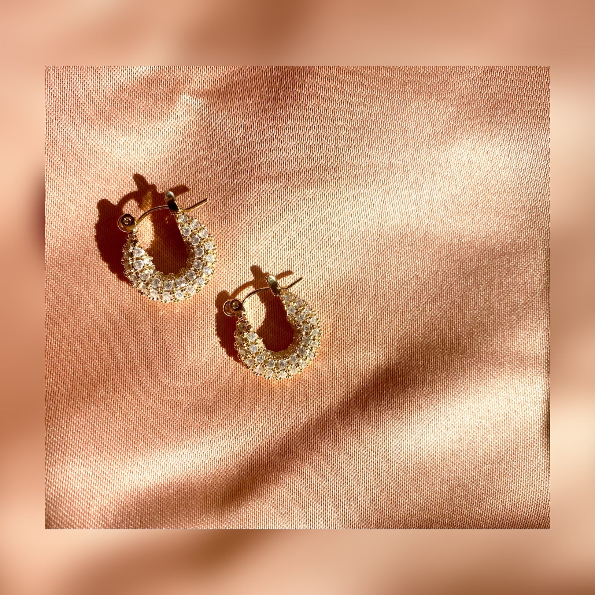 Classic, gold plated, tarnish-resistant, studded hoops. So elegant and suitable for any occasion. Lightweight for the utmost comfort.