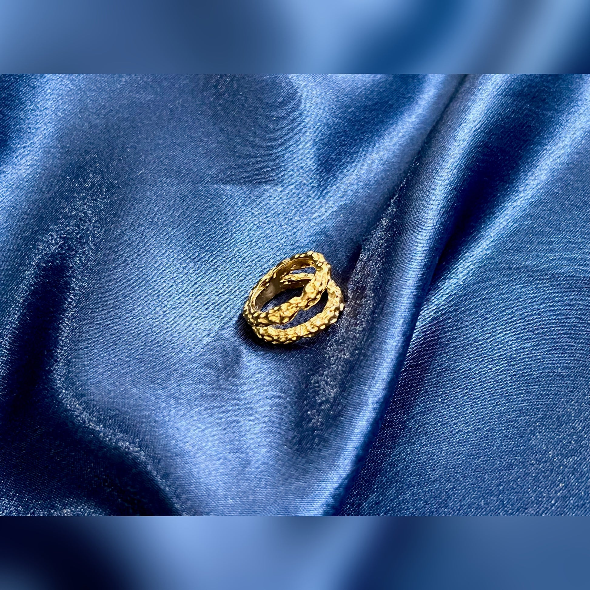 18k solid gold plated over stainless steel. Tarnish-resistant piece. Beautiful rigid design.