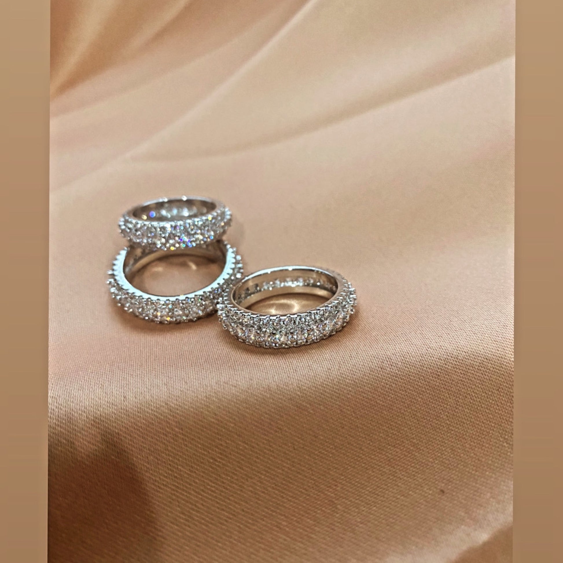 Crafted with 925 sterling silver and inlaid with cubic zirconia crystals, these stacking rings are the perfect addition to any ensemble.